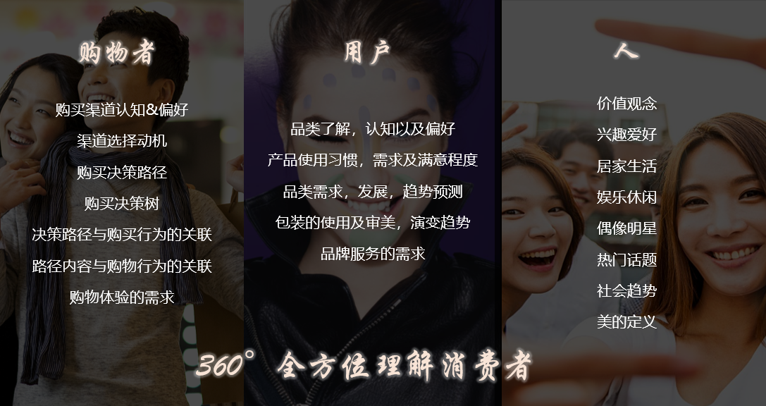 同样重要的是,作为人,我们对他们的了解需要更全方位一些,会了解她的价值观、生活方式、居家生活、娱乐休闲等方方面面,包括去关注他们现在最关注的热点话题。我们希望了解的是消费者作为一个人,360度立体的了解。