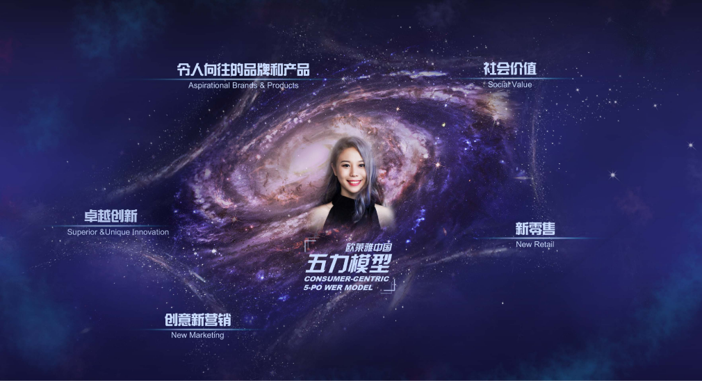 欧莱雅取得如此卓越成效的主要核心原因是什么,总结就是始终以消费者为核心的“欧莱雅中国五力模型”:令人向往的品牌和产品、卓越创新、新营销、新零售、社会价值。始终提供给消费者,令他们向往的品牌和产品;始终探索卓越有效的产品创新;一直不停地去思考怎么样能够提供给消费者颠覆性的新营销和互动方式;提供给他们线上线下融合的新零售体验,在消费路径的每个环节为消费者提供便利;也包括不断积极为社会发展做贡献。欧莱雅中国的所有战略构想和业务工作,都是从对消费者需求的洞察开始。