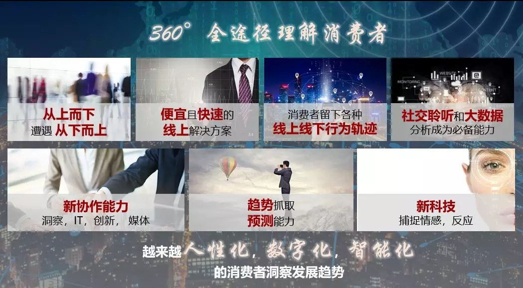 消费者洞察的发展趋势越来越人性化、数字化、智能化。对未来科技的发展,要有非常敏锐的洞察,要了解未来如何能够把握最新的趋势。谁能够成功预测它的发展,谁就会掌握先机。
