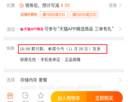 2)通过天猫时效承诺服务产品设置更优发货时间的商品,发货时间以商品页面展示为准。示例如下: