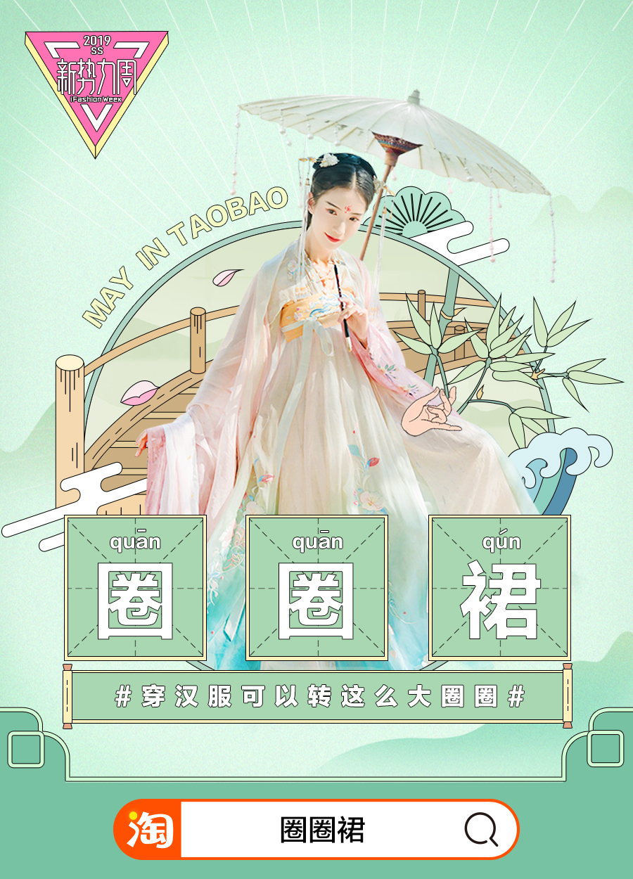 以圈圈裙、大袖衫为代表的汉服影响力已经慢慢从小众人群蔓延到了更加大众的市场。淘宝数据显示,新势力周期间,全平台汉服成交量同比去年同期近乎翻倍。汉服商家小豆蔻成交同比暴涨近1400%,成为当之无愧的黑马选手。店内的千山鸳鸯齐腰儒裙也当选了本季爆款。在即将到来的618,汉服商家也将作为传统服饰的代表,以服饰设计的艺术让更多年轻人接触传统文化。