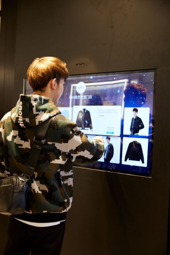 2018年11月,GXG与天猫合作的首家新零售体验店在南京建邺万达正式开业。这家店里聚合了天猫上众多新零售技术,从"一键试衣"、"微笑领红包"到"互动游戏"一应俱全,一系列有趣的玩法吸引了大量消费者前来体验,从一大早开始,店门口就排起了长队。店铺内设置的微笑打折机,成了年轻人必到的打卡点,只需要在机器前展示一下笑容,就会被匹配到折扣红包。