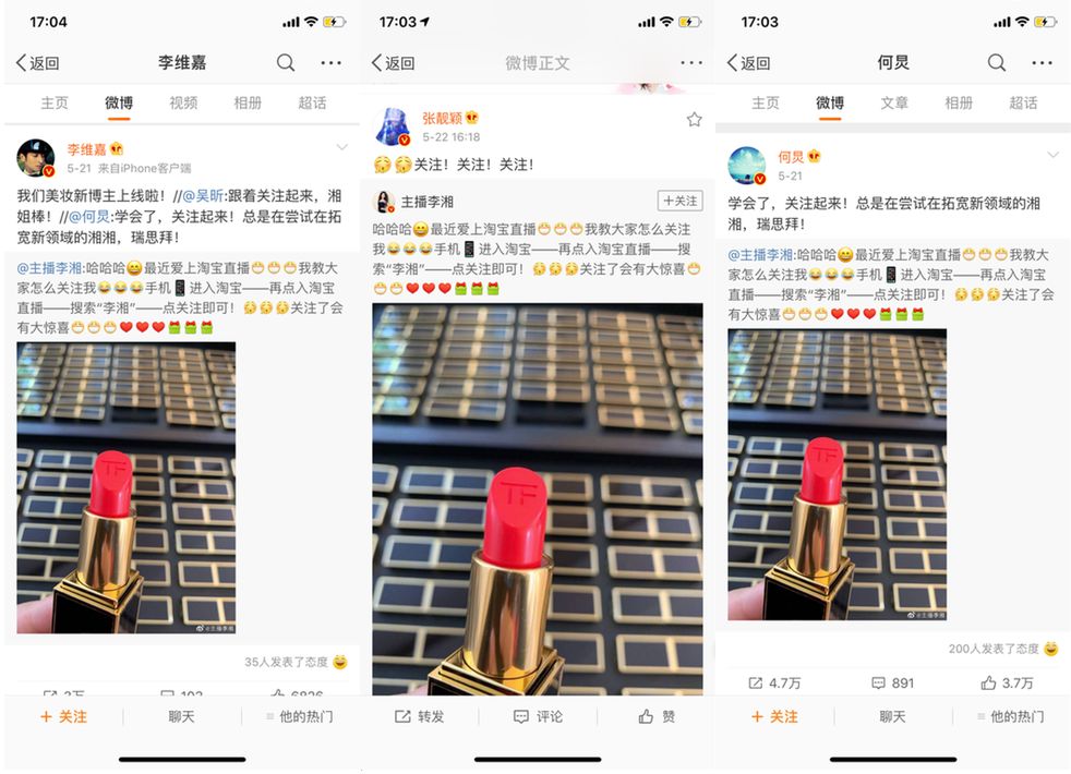 5月19日,知名主持人李湘发了一条自己成为“淘宝主播”的微博:“最近爱上淘宝直播,教教大家怎么关注我…..关注后会有大惊喜”,一时之间上了热点。