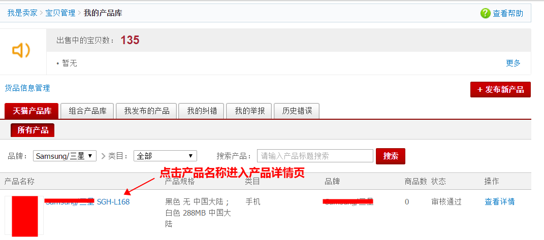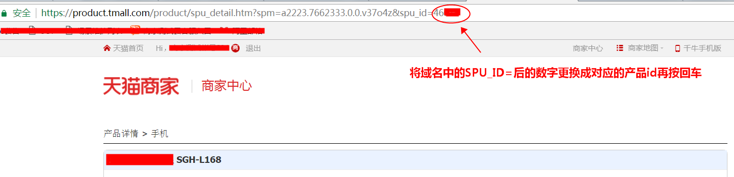 通过【卖家中心】-【我的产品库】-【天猫产品库】任意点开一个产品进入产品详情页后,将域名中的SPUID后的数字改成您要找的产品ID后按回车键,页面即可跳转到指定产品的详情页,根据已存在产品的信息填写