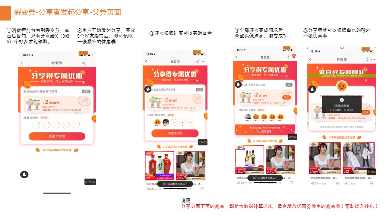 父券面额高出同时期店铺券50%以上,或20元权益差,门槛可比同时期店铺券门槛高。(大促时,裂变券客单价是大盘的3倍)。父券,子券力度都必须高出同时期店铺券。