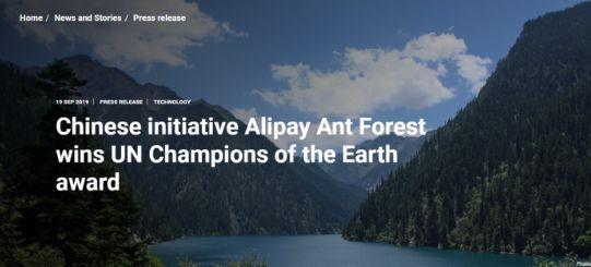 这不是支付宝蚂蚁森林第一次被联合国点赞。