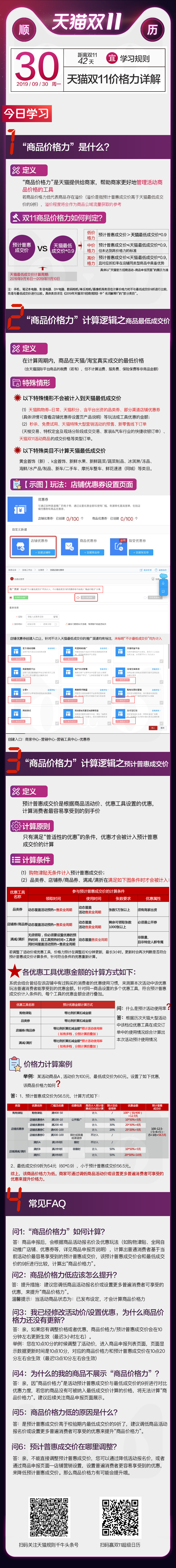 2019年双11活动商品的报名即将在10月15日开启,在商品报名之前,为了帮助大家更好地为双11做好准备,天猫营销规则小二将通过视频为您讲解 “天猫双11商品价格力是什么?具体的计算逻辑如何?常见的问题有哪些等等” ,赶快点击下方↓视频学习吧!