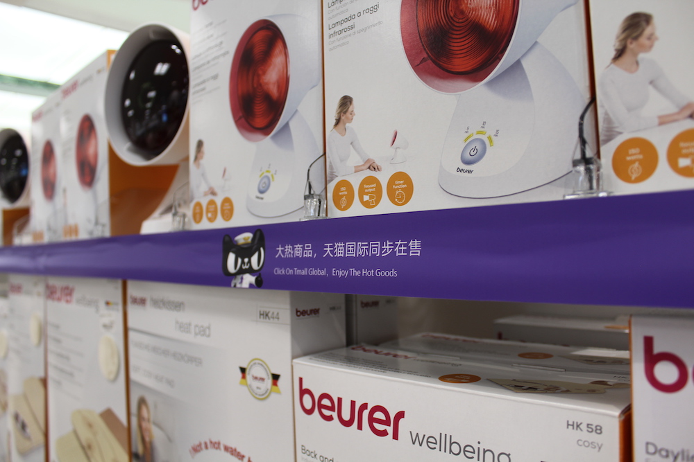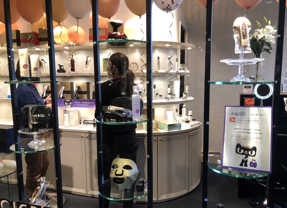 日本东京的美容仪Dr.Arrivo品牌线下店温馨提示游客:大热商品,天猫国际同步在售。同样在德国乌尔姆市中心的Beurer柜台、法国巴黎的SteamOne挂烫机品牌店,韩国首尔的美容仪Omelon店内,商家都摆出了中文告示:提醒消费者回国后,可在天猫国际的品牌海外旗舰店购买到店内商品。