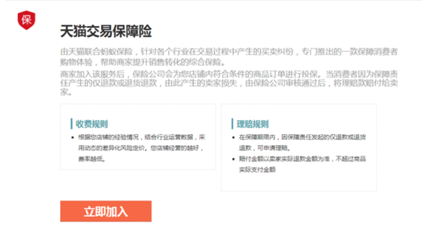 1. 商家可在天猫的商家中心,选择【商家保障】菜单,选择天猫交易保障险申请加入。然后请根据以下第3步继续。
