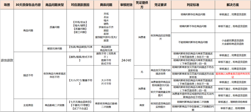 消费者申请仅退款/退货退款 | “30天质保+“:商品问题类原因 |