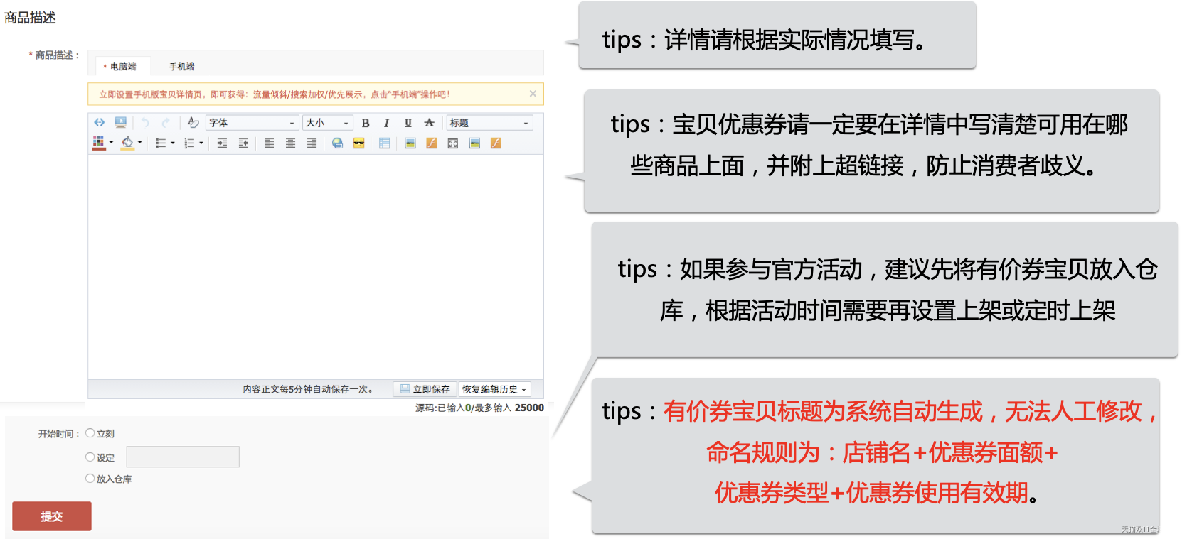 2. 设置步骤-有价优惠券的设置方法比较简单,商品发布成功后即完成设置