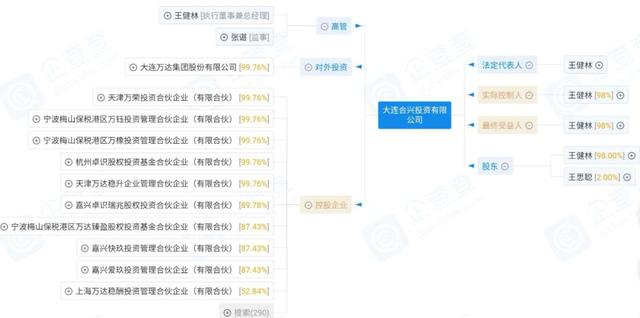 王健林通过持股98%的大连合兴,控制着庞大的万达帝国,编织着他的业务关系和资源网络。