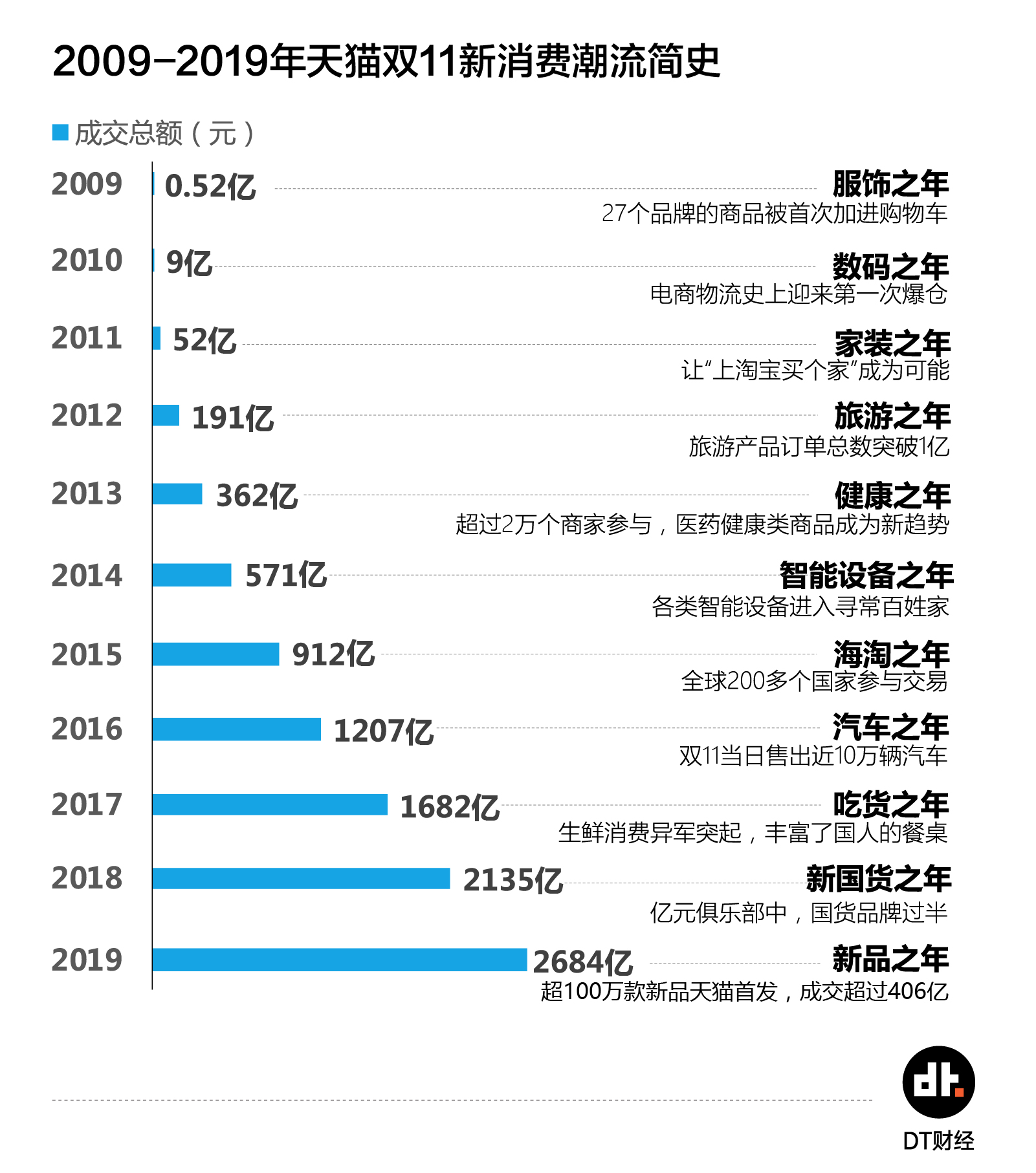 伴随着2684亿的成交额新纪录,第11个天猫双11落下帷幕。DT财经13日发布报告《创造新消费:数字时代的经济新动能》指出,双11本身就是一个承载创新的平台,是观察新商业形态蓬勃生长的绝佳场景。