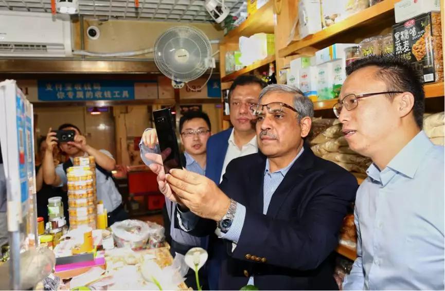 2018年7月25日,北京酷暑,时任巴基斯坦央行行长的塔里克·巴杰瓦一大早跑到了三源里菜市场,现场九成以上的摊位都挂着付款二维码。在27号摊位前,塔里克.巴杰瓦停下来,借用蚂蚁金服董事长兼CEO井贤栋的手机,试着扫一扫,不花现金买了袋33元的葡萄干。25岁的中国店员告诉他,用支付宝不仅方便做生意,还可以在手机上报销医疗费,连老板也用它贷款。
