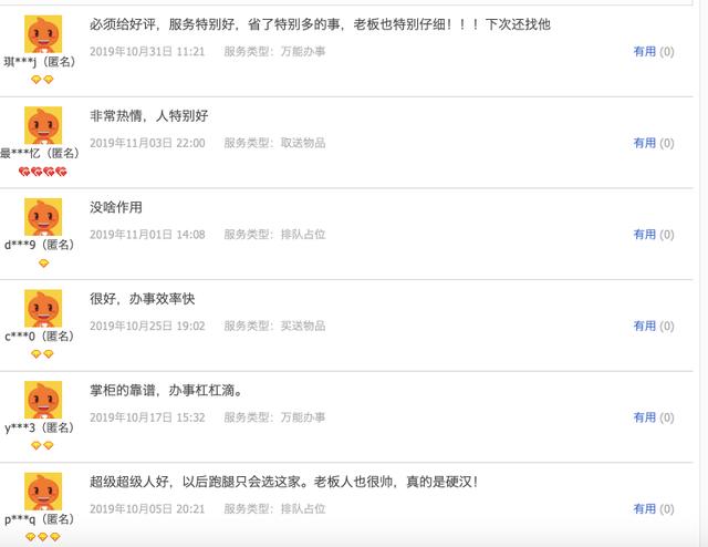 任青粗略计算过,从2017年开店至今,他服务的买家上千。服务内容包括排队、行李寄存、取号代买、搬家、快递等等。他按时间和路程收费,在淘宝店罗列了四五种情况,一一举例,明码标价。