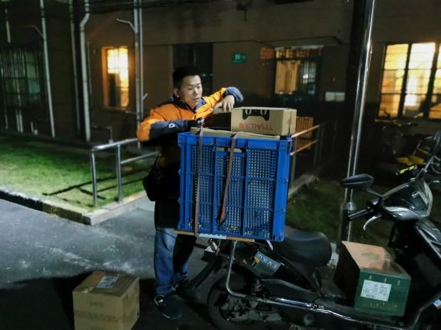 他所在的上海市徐汇区丹鸟物流梅陇站点,片区内居民买的大多是柴米油盐之类的生活用品,全是一袋子一袋子的玻璃瓶,份量重不好码放,到了小区得送上楼房,这对王德瑞来说是全新的挑战。