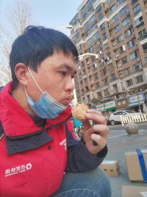 第一天复工的时候,余志祥还能在便利店坐下,吃上几口热便当,顺便喘口气。现在,他基本只能抽时间去便利店囤上一天的口粮,在两个派送点转场的路上或者等客户取件的空隙,草草啃上几口干粮,就算解决三餐了。至于下班,更是没有固定时间可言,什么时候小区不给送件了,什么时候收工。