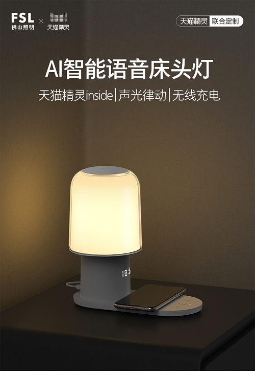 去年8月份,佛山照明与天猫精灵合作研发的智能床头灯,就内置了语音助手,不仅具备智能音箱的全部语音交互能力,还能给手机无线充电,设计了助眠模式、夜起盲控等全新体验,远远突破了“灯具”品类的属性。