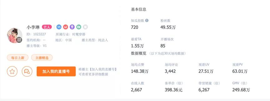 微博、抖音,小李琳都相对低调,很少外部宣发造势,精力都放在一场接一场的直播投入里。开播半个月,就实现了单场GMV超300万元,开播3个月,揽粉近50万。