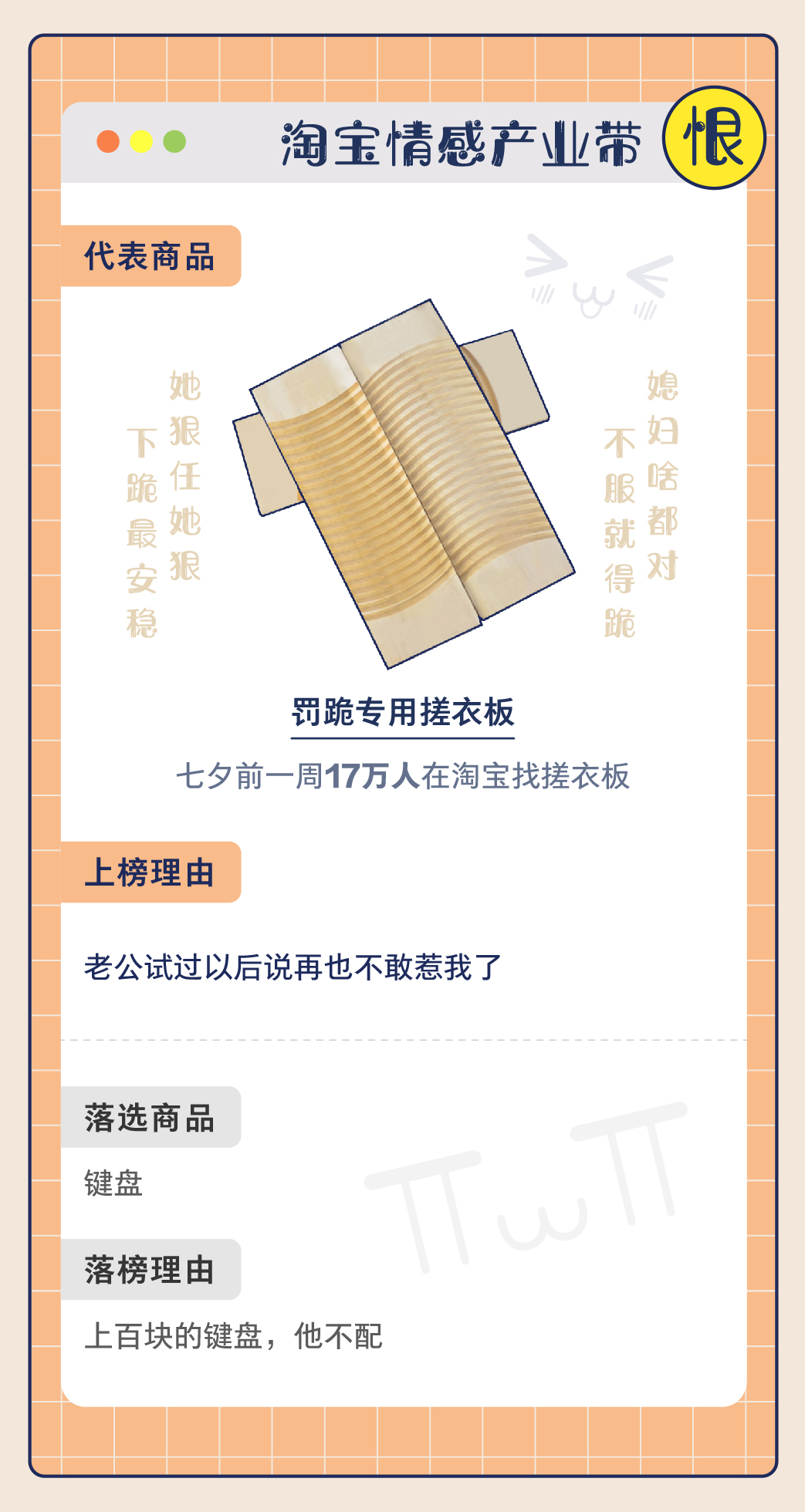 玫瑰、礼物,在淘宝年轻人眼里已经太普通了,淘宝的情感产业带里有太多或好玩或温情的商品。销量未必很高,但年轻人的爱恨情愁、喜怒哀乐都藏在这里面。