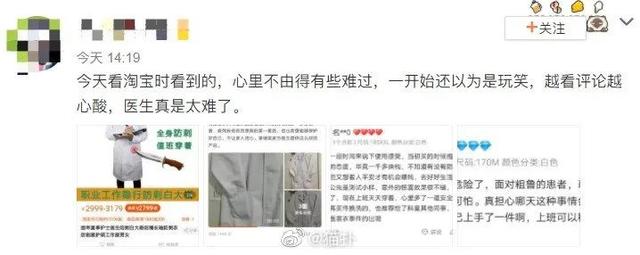 一位网友在微博发帖称,逛淘宝时看到了这款商品,心里不由得有些难过,“一开始还以为是玩笑,越看评论越心酸,医生真是太难了”。