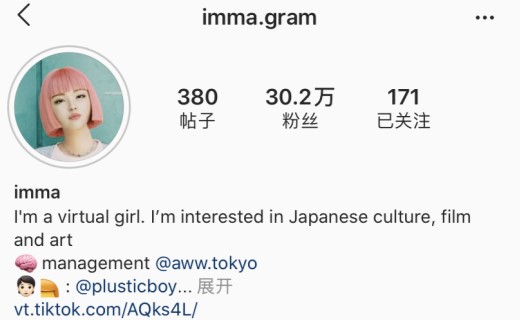 然而,imma其实不是真人,她是一家日本公司打造出来的虚拟网红。