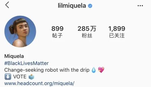 爱憎分明的性格,更是让Lil Miquela在Instagram上的人气飙升,目前粉丝已超过285万,是不折不扣的超级网红。